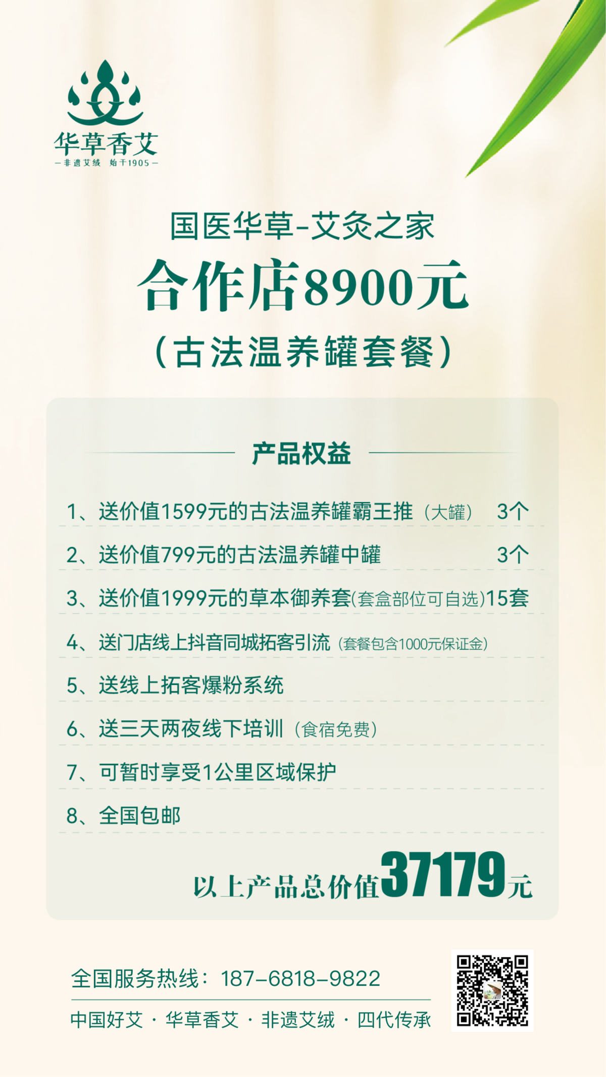 8900元国医仲景合作店一共8大权益,总价值近4万元的货品给您包邮到家,具体方案内容请看下面这张图,所见即所得。